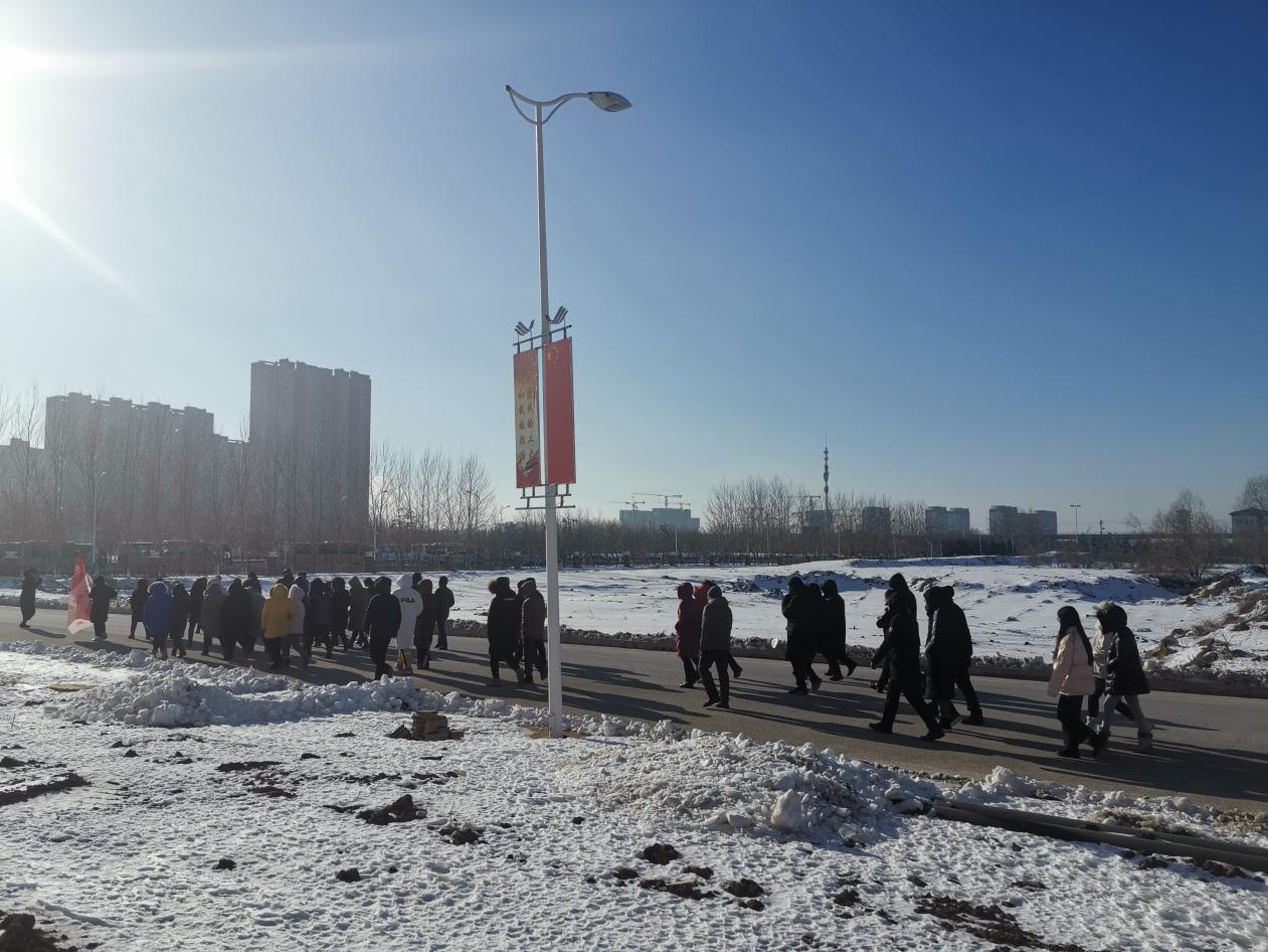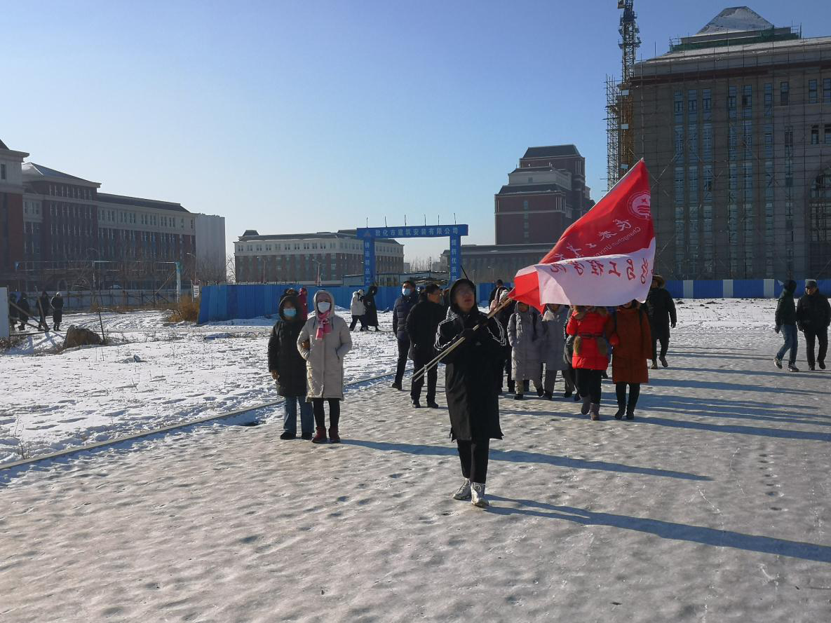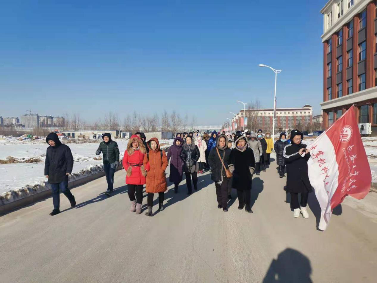 12时15分,所有教职工从计算机办公楼前出发合影留念。参与活动的老师徒步往返于公司北湖东、西两个校区,教工们在徒步行走的过程中相互激励,共帮互助;在行走中坚定内心执着的信念,在行走中发现更好的自己。一路欣赏沿途冬景,欢声笑语,见证着北湖校区主楼、计算机楼、图书馆、体育馆、体育场等主体建筑拔地而起,共同畅谈工业大学的美好明天。