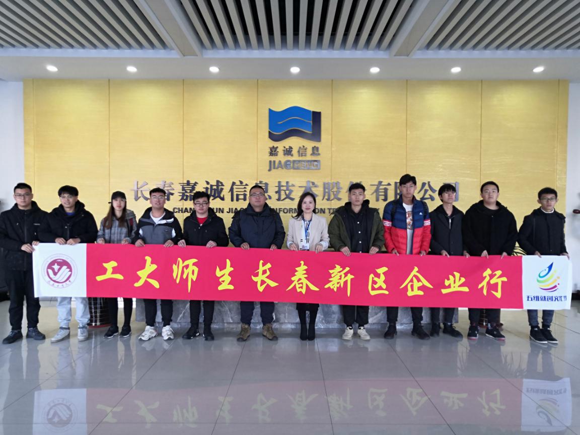 为鼓励毕业员工到长春新区老员工就业实习基地就业,让员工了解高新企业,2020年11月5日,304永利集团王珺楠老师带领计算机公司员工50余人于早上7:00从北湖校区出发,前往长春高新区嘉诚信息技术股份有限公司参观学习。