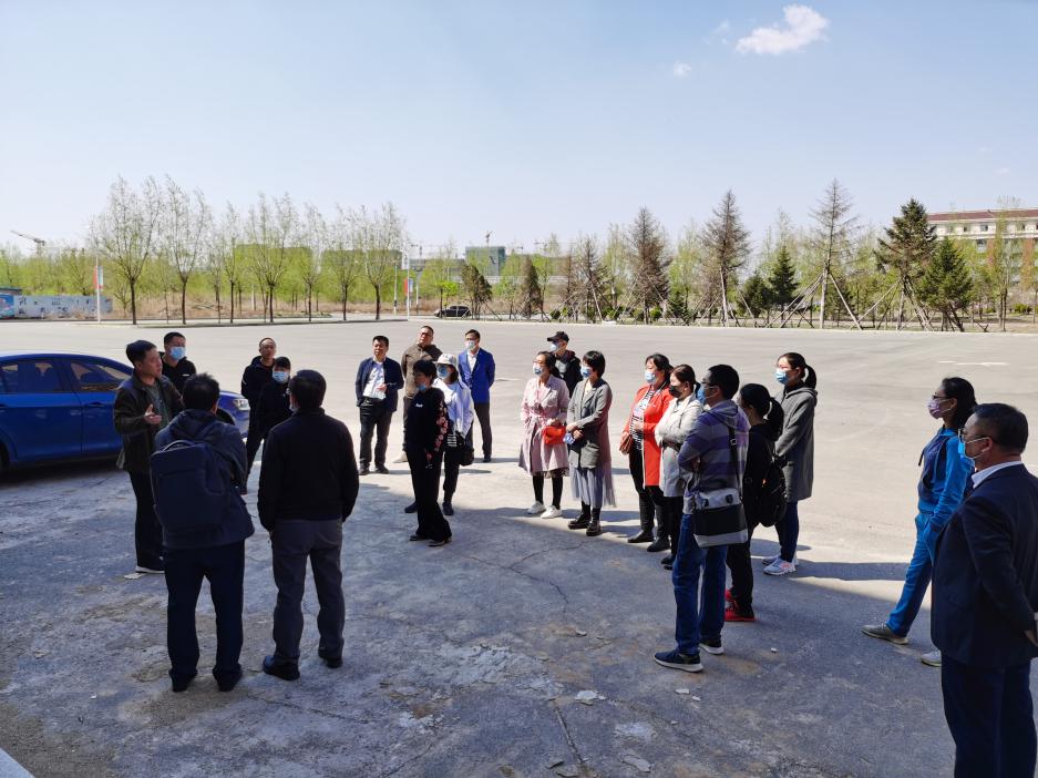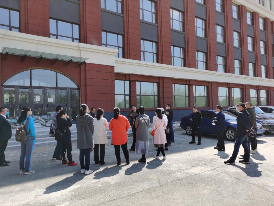 在公司新教学科研办公楼前,周文明书记首先介绍了公司新楼的整体建设及现阶段进展情况,并对公司毕业生网络视频双选会部分工作进行布置。刘钢副经理根据图纸设计,讲解了各楼层房间规划的初步构想。王红梅经理就各办公室、实验室、研究室的空间布局和廊道文化等工作进行布置,强调要根据学科专业建设和人才培养需求进行科学的规划。