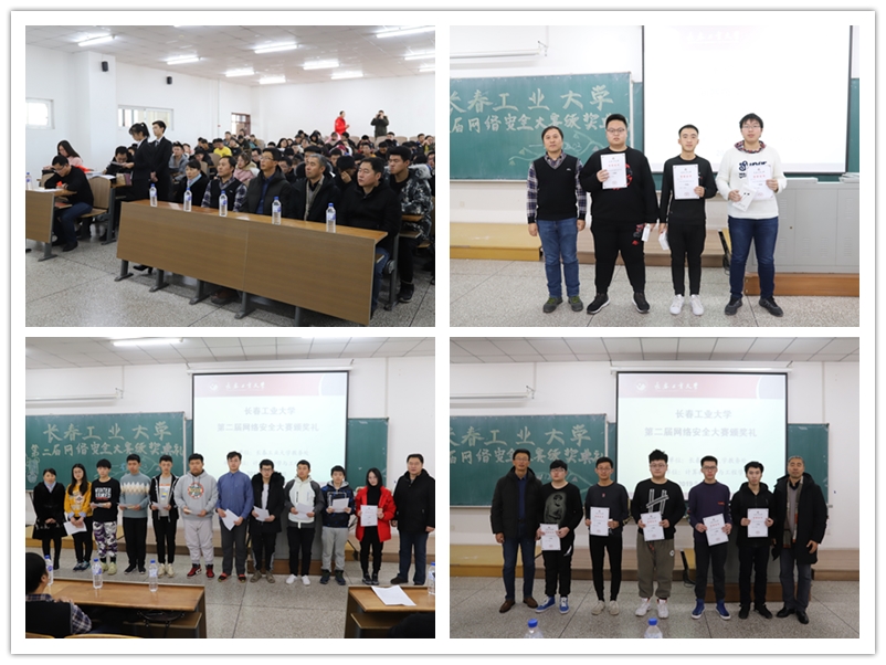新闻网讯(通讯员付晓琳)12月3日,304永利集团第二届网络安全大赛在北湖校区东阶304教室举行颁奖典礼,历时一个多月的竞赛落下帷幕。教务处副处长杨国程,应用技术公司经理王立君,国际教育公司经理姜长泓,公司党委书记周文明、经理王红梅、党委副书记季宏伟出席了本次颁奖典礼。应用技术公司、国际教育公司及公司部分新生参加了本次典礼。与会领导为获奖同学颁发证书和奖品,杨国程副处长发表讲话,希望同学们在大学期间能更多地丰富自己的人生经历、更好地学习专业知识,并通过竞赛提升自己的实践能力和创新能力,为以后从事专业工作打好基础。