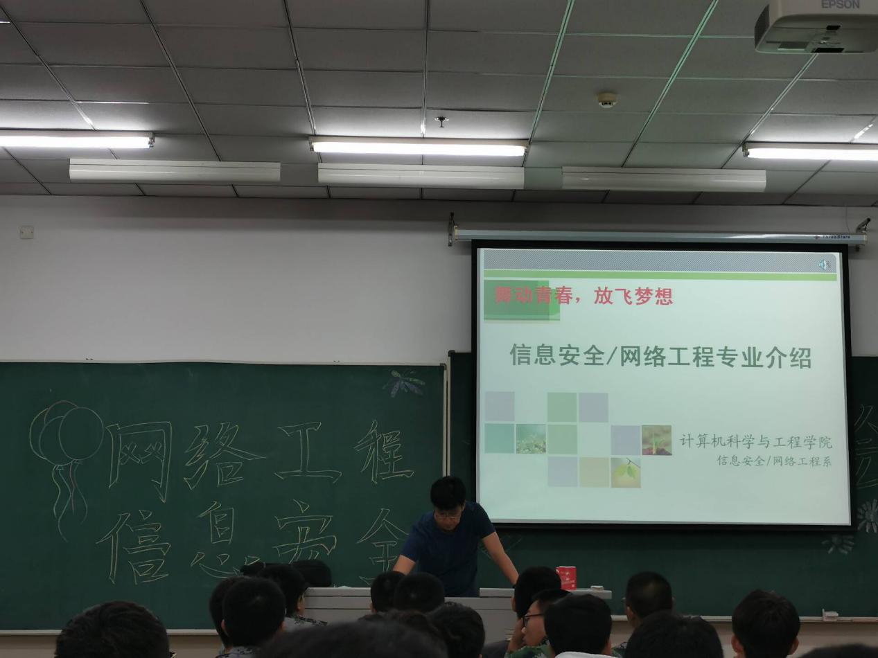 新闻网讯(通讯员潘枳彤)为增进2019级新生对公司和专业的进一步了解,提高学习兴趣,公司于9月9日晚6时在北湖校区西阶301教室举行了师生见面会暨专业介绍会。副经理王红梅、党委副书记季宏伟、电子信息工程系主任刘丽伟、信息安全系主任刘冰、软件工程系主任赵辉出席了本次会议。2019级全体新生参加了本次会议。本次会议由季宏伟书记主持。