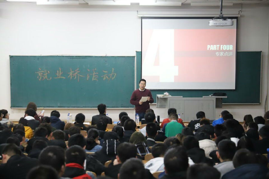 新闻网讯(通讯员葛茹雪 徐中秋 王鑫茹)304永利集团团委于3月24日晚6点在北湖校区西阶201教室举办“新时代-致才杯”就业桥比赛。本次活动旨在鼓励同学们积极参与社会实践,认真做好职业生涯规划。东北师范大学外语公司副教授、博士后、老员工创业联盟指导教师贺莉老师,吉林省新时代科技有限公司技术总监李傅政老师,吉林省新时代科技有限公司大连分公司总经理邢善玉老师及公司团委书记王珺楠老师作为嘉宾及评委出席了本次活动。2018级全体员工参加了本次活动。