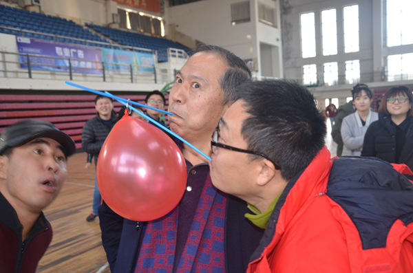 活动分为五个代表队,分别参与4个活动项目,包括为托球接力,快乐传递,定点盲行,同心笔等, 项目形式多样、趣味横生,不仅使老师们体会到了本次活动的趣味,更感受到了团结协作的重要。活动中,大家纷纷为自己的代表队助威呐喊,奋力的加油声和开心的欢笑声充满了整个赛场,到处都洋溢着轻松的气氛,娱乐活动在老师们齐心协力写下“新年好”的美好祝愿中结束。
