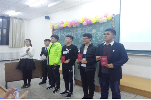 比赛在激情昂扬的歌声中拉开了帷幕。本次比赛采用一站到底的形式,通过三人一组进行团队两两比拼,主持人轮流对双方队伍发问,并给出四个选项,在规定时间内三位队员共同选出一个认为是正确的答案,最后正确回答问题数目多的团队获胜,继续参加下轮的比拼。整个比赛环节紧凑,趣味盎然,题目类型包括人文、地理、历史、生物、科普及生活常识等。流水战必答题中选手们机智果敢,手速战抢答题中斗智斗勇,赢得台下阵阵掌声与喝彩。其中“猜方言”及“挑战选手”游戏环节,充分调动了观众们的积极性,大家踊跃参与,现场气氛活跃。活动最后,有五个代表队凭借其丰厚的知识储备脱颖而出。学委队荣获一等奖。160401班和160406班代表队获得二等奖。160404班和160405班代表队获得三等奖。