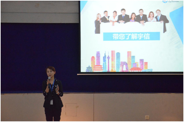 本次宣讲的目的是让同学了解宇信集团,经过笔试以及面试的方法选拔出优秀学子到宇信集团实习、就业。杨飞经理首先介绍了宇信集团的行业地位、人员规模、企业文化、公司环境、业务范围、主要合作伙伴等企业相关信息,然后介绍了企业为校招员工提供的“孵化培养计划”、人才培养计划以及员工享有的社会保险、三险 一金等工薪待遇。最后详细介绍了公司为员工设定的全面的职业晋升发展通道,宇信集团每年一次的晋升机会,可以帮助每个员工成为未来的行业专家或全面的管理 者!会后,同学们通过手机客端户参与了宇信集团的第一轮笔试。