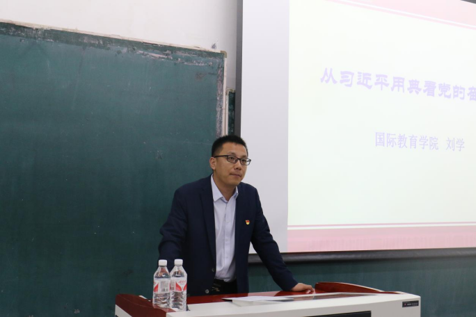 此次宣讲主题为从习近平用典看党的奋斗精神。刘学老师撷取习近平总书记的几条用典,结合党的奋斗史,从宏伟大志、理想信念、永久奋斗三方面讲述新时代青年该如何奋斗。首先,刘学讲述习近平引用《后汉书·虞诩传》中“志不求易者成,事不避难者进”,结合焦裕禄、张桂梅的个人事迹,教育同学们应志存高远、脚踏实地,不畏艰难险阻,勇担时代使命,到祖国最需要的地方去,把个人理想追求融入党和国家事业之中,为党、为祖国、为人民多做贡献。而后,他讲述习近平引用毛泽东诗词《七律·到韶山》“为有牺牲多壮志,敢叫日月换新天”的诗句,结合杨贵带领红旗渠人民建成红旗渠的必胜信念和无私奉献精神,教育同学们只有坚定理想信念,把自己的理想同祖国的前途、把自己的人生同民族的命运紧密联系在一起,扎根人民,奋斗国家,才能把握好人生的“方向盘”,在筑梦路途上脚踏实地、行稳致远。然后,刘学老师讲述习近平引用毛泽东《七古·残句》中“自信人生二百年,会当水击三千里”一句,结合八路军三五九旅官兵在党的号召下把荆棘遍野、荒无人烟的南泥湾变成陕北好江南,北斗人用数十年的接力奋斗使北斗系统成为当代中国的耀眼名片,教育同学们要在劈波斩浪中开拓前进,在披荆斩棘中开天辟地,在攻坚克难中创造佳绩,用青春和汗水创造出让世界刮目相看的新奇迹。最后,刘学老师总结了自己讲述的内容,告诫同学们奋斗是青春最亮丽的底色,民族复兴的使命要靠奋斗来实现,人生理想的风帆要靠奋斗来扬起。刘学老师祝愿同学们在今后的人生道路上奋斗并幸福。