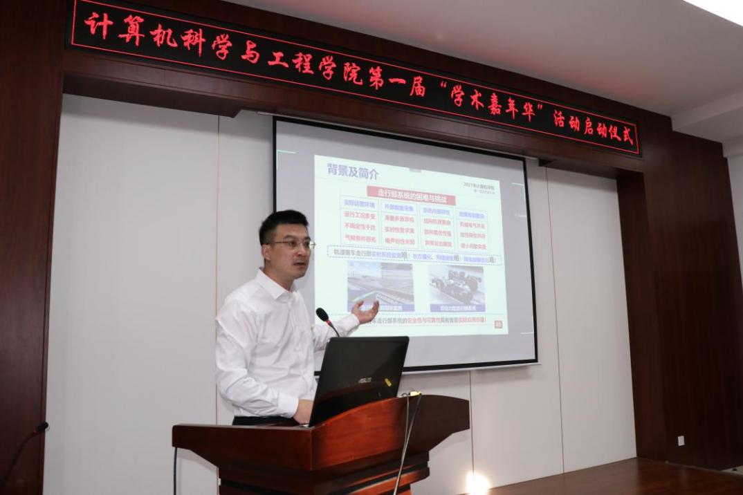 启动仪式后,副经理程超做了题为《浅谈科研能力培养与科研思维创新》的报告。主要介绍了走行部系统的背景简介、故障检测等相关内容,以及走行部系统的困难与未来的挑战。