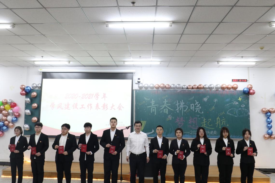 大会在庄严的国歌声中拉开了序幕。副经理刘钢宣读《关于表彰2020-2021学年304永利集团学风建设工作先进集体及优秀个人的决定》后,参会领导为各获奖代表颁奖。