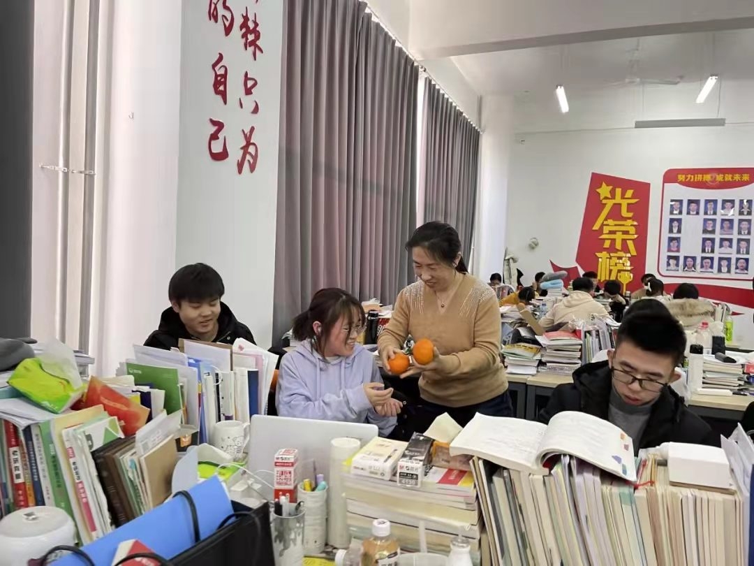 活动伊始,在场的领导、老师们先是给在场的同学们送上了橙子,寓意心想事“橙”,考研”橙“功。随后,周文明书记鼓励备考学子,希望这小小的礼物,可以带给同学们更多的鼓励与温暖。他表示,坚持到最后不容易,一路走来,同学们的努力与付出都会被记得,埋头耕耘之后即将迎来果实的美好,希望大家调整好节奏,持续发力的同时,注意饮食,做好防护。王红梅经理指出,公司领导、老师、学弟学妹一直都在他们的身后,是他们最坚强的后盾。在场的领导老师代表全院师生,鼓励同学们调整好状态,全力以赴,为自己的未来拼搏。