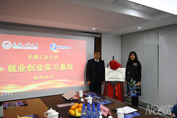 董事长张明耀与公司1997级员工、上海复深蓝软件股份有限公司董事、联合创始人兼副总裁靳翠共同为就业创业实习基地揭牌