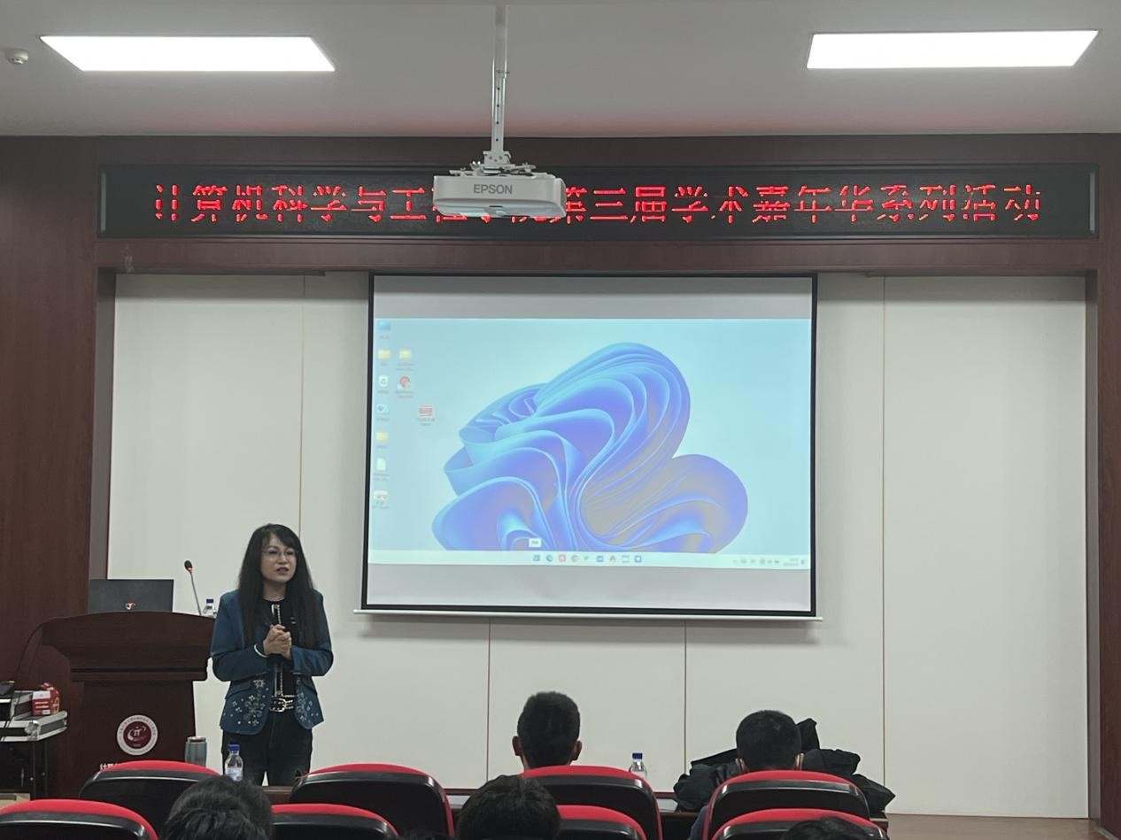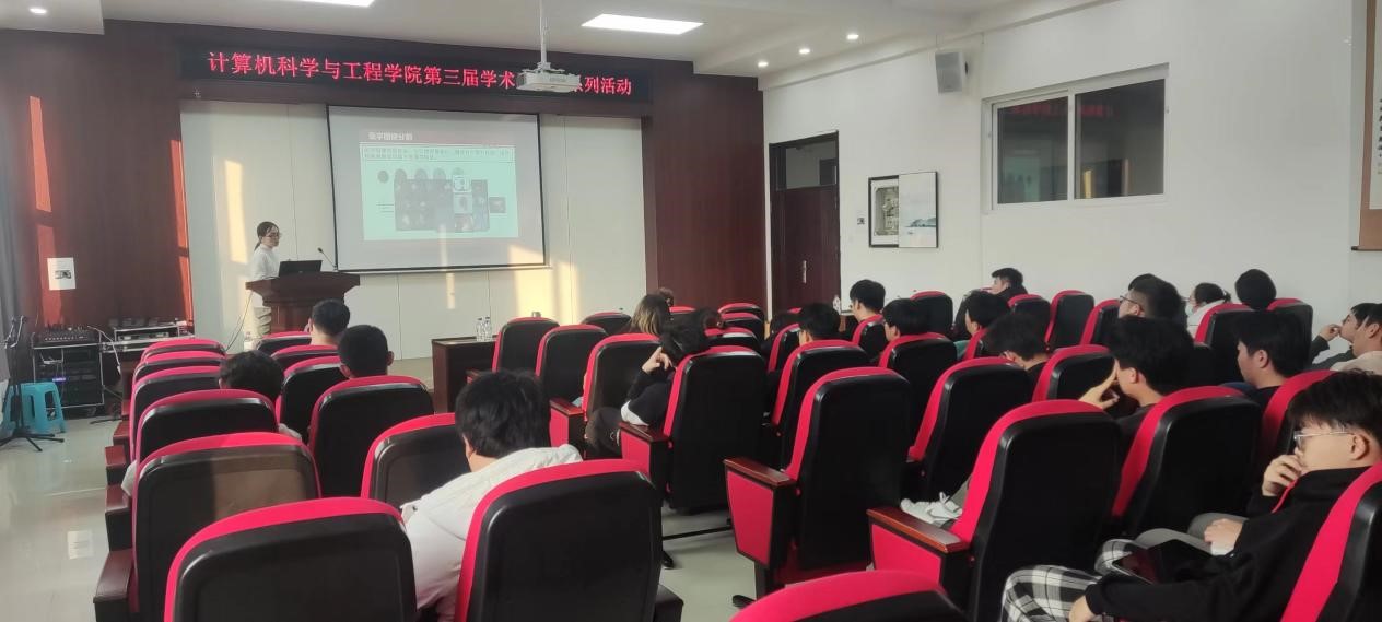首先,冯云丛博士作了题为《医学图像分割算法研究》的报告。她对医学图像分割进行了介绍,并对基于区间迭代的脑部MR图像多阈值分割算法、基于距离感知的医学图像分割算法等研究成果进行了精彩的汇报,并对现场师生提出的多个问题进行了耐心细致的解答。