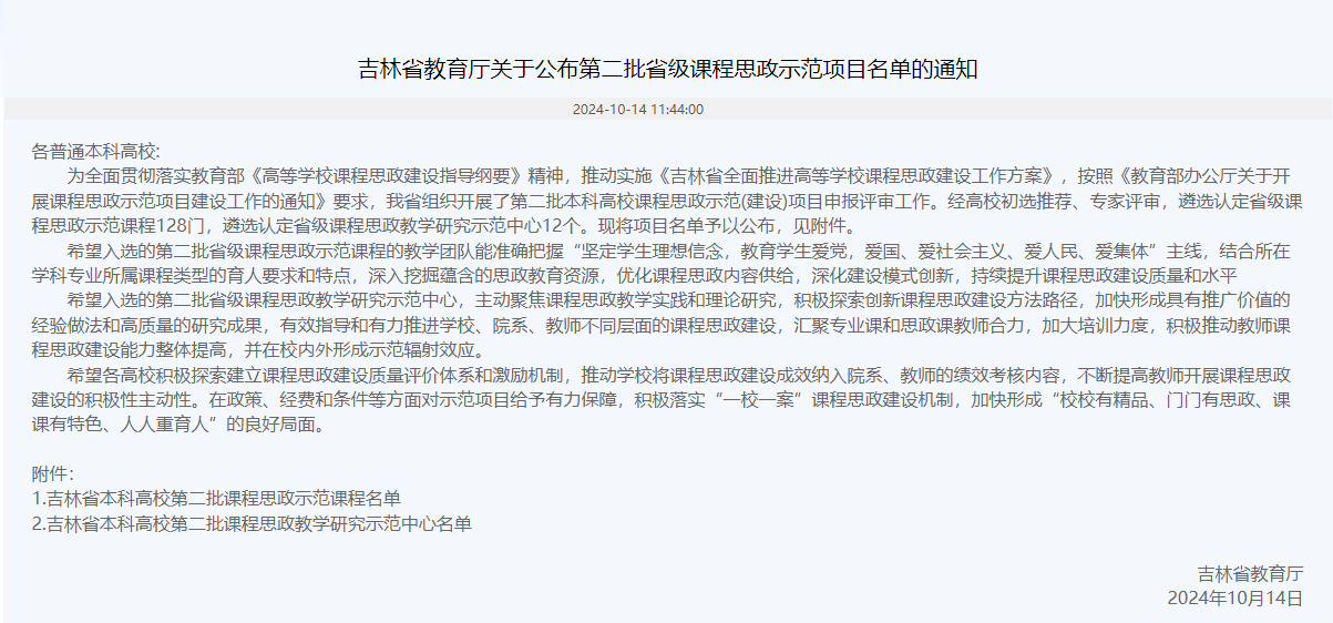 本网讯(通讯员 郑安)2024年10月17日,吉林省教育厅公布了第二批课程思政示范课程认定结果,公司鲁慧民副经理的《领域应用开发实践》和郑山红老师的《软件工程导论》两门课程成功入选,成为全省课程思政建设项目的典范。