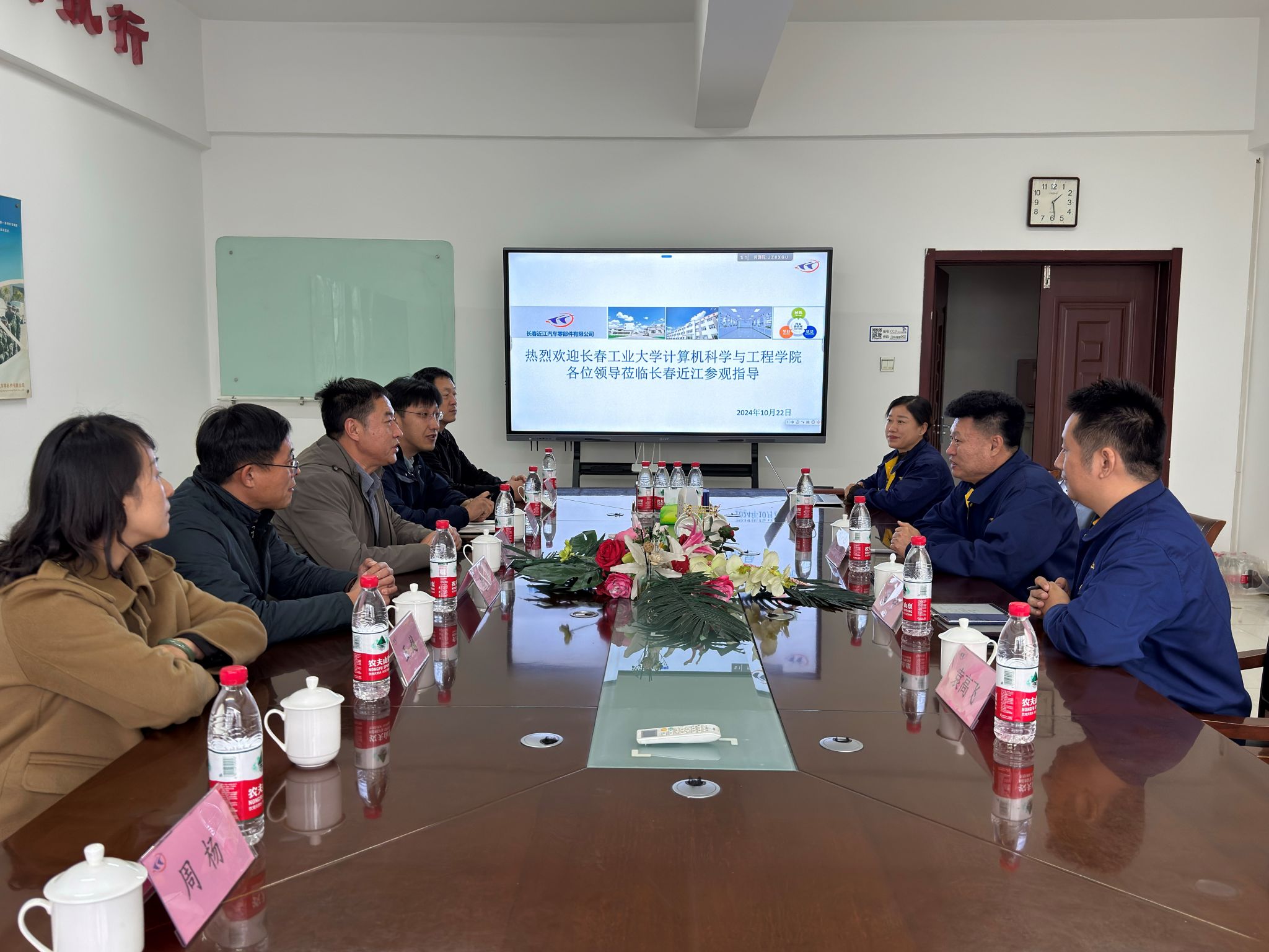 本网讯(通讯员 周扬)10月22日下午,公司党委书记周文明率队走访长春近江汽车零部件有限公司。国际教育公司党委书记季宏伟,公司党委副书记王越,副经理刘冰,软件工程系党支部书记宁静峰及毕业班辅导员周扬一同参加走访活动。