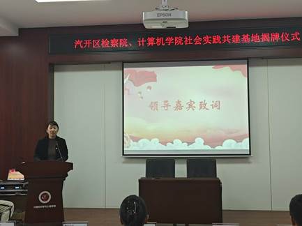 会议最后,计算机公司党委副书记王越为共建基地致辞。她对汽开区检察院在公司人才培养工作中的鼎力支持表示衷心的感谢,并强调,此次合作不仅是高校与检法部门的创新性结合,也是双方共同培养具有法治精神与社会责任感的时代新人的重要举措。