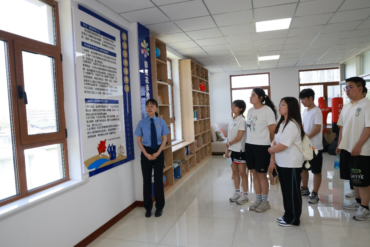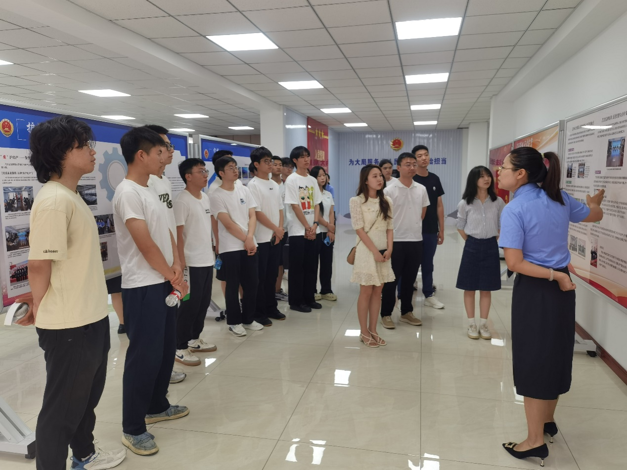 活动伊始,师生们在讲解员的引导下参观党建文化及未检活动中心,系统展示了检察院以高质量党建引领检察业务发展的实践与成果。通过详实的图文资料和生动的讲解,让同学们深刻感受到党建在检察工作中发挥的“红色引擎”作用。随后,讲解员详细介绍了检察院的核心业务部门——第一至第四检察部的主要职责,让同学们对检察院各部门分工协作、共同维护公平正义的职能体系有了清晰的认识。