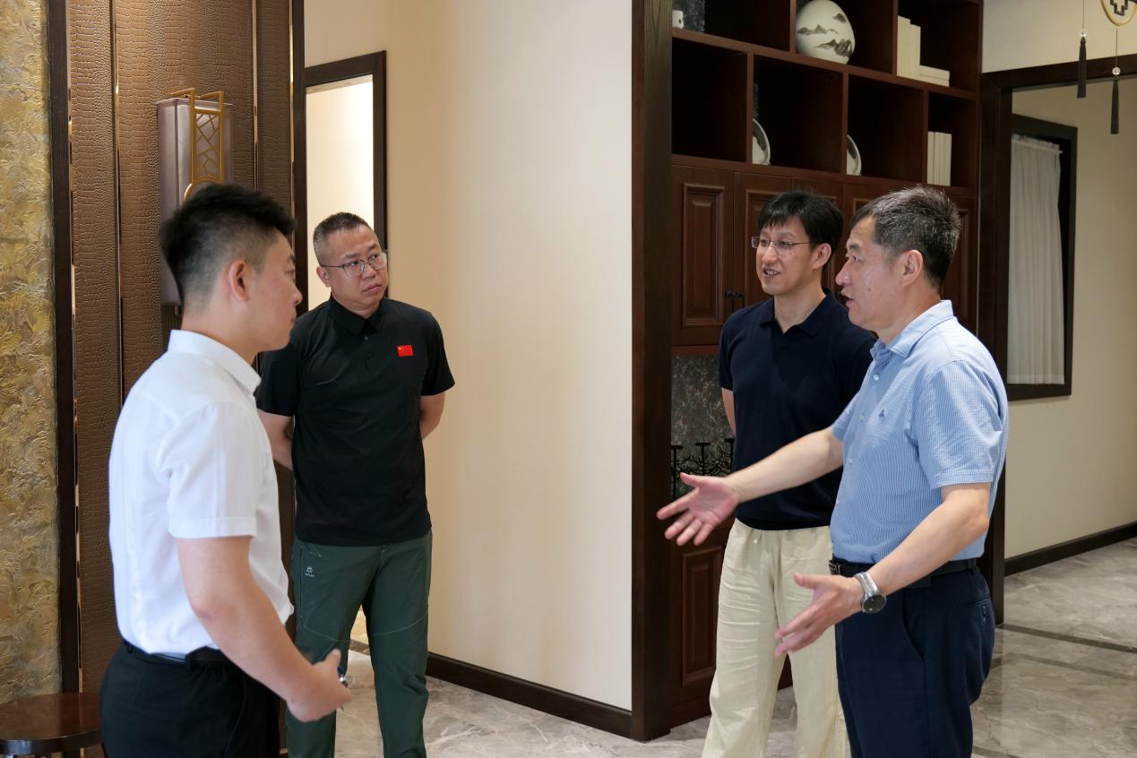 在兰舍集团总裁张宪、华航无人机培训招商负责人张儒峰、生产负责人吴俊峣、人力总监郐海燕、招聘主管于雪梅的陪同下,公司调研团队首先参观了具有行业标杆意义的兰舍小镇。该小镇创新性地构建了新中式、北欧、古典欧式、地中海等八大主题样板间,通过场景化、沉浸式的展示方式,系统呈现了硅藻新材料在不同家居空间中的创新应用。企业技术总监结合发展历程墙和产业布局沙盘,详细阐释了兰舍集团“科技+环保”的双轮驱动发展战略。