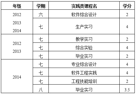 (二)实践课程学分范围