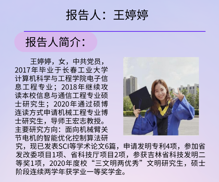 “登高博见”——面向机械臂关节电机的优化控制方法研究 主讲人:王婷婷 时间:2021年11月11日 9:30 |