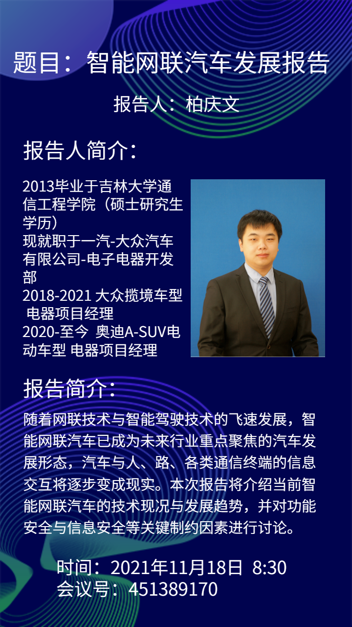 时间:2021年11月18日 8:30 腾讯会议号:451389170 |