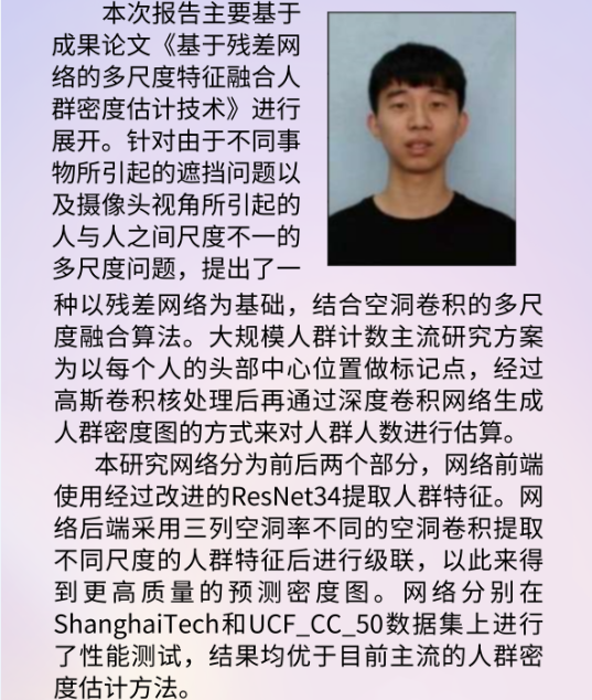 “后起之秀”——基于深度学习的大规模人群计数研究 主讲人:孙弘建 时间:2021年11月26日 16:00 |
